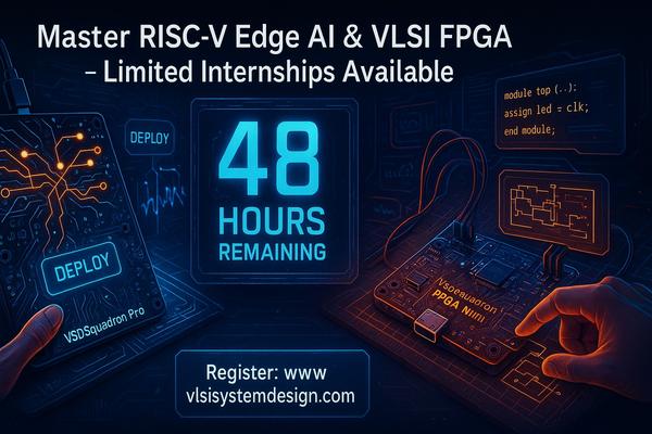 Time is running out for India’s most hands-on VLSI internships—registration closes in just 48 hours! If you’re a student with dreams of building the next RISC-V Edge AI or VLSI FPGA innovation, this is your moment to break into the industry with real hardware, real projects, and real mentors.